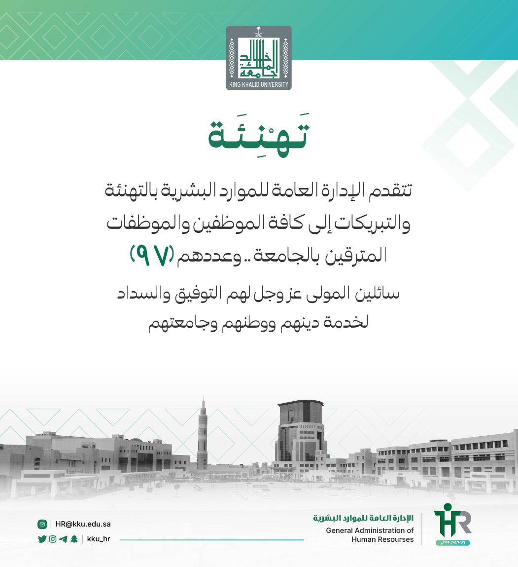 تعلن الإدارة العامة للموارد البشرية بجامعة الملك خالد عن أسماء المترقين من شاغلي السلم العام للمرتبة العاشرة فما دون