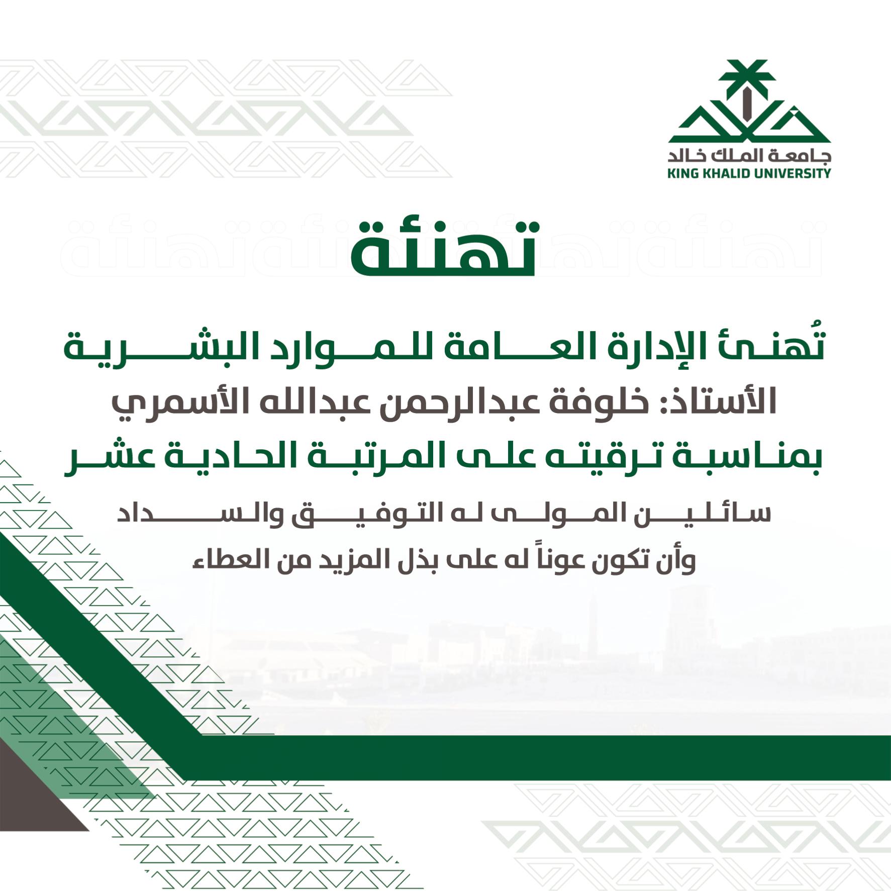 تهنئ الإدارة العامة للموارد البشرية الأستاذ / خلوفه بن عبدالرحمن عبدالله الأسمري