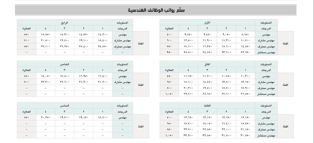 اعتماد سلم رواتب جديد للوظائف الهندسية في الجهات الحكومية اعتباراً من 31 ديسمبر 2024م