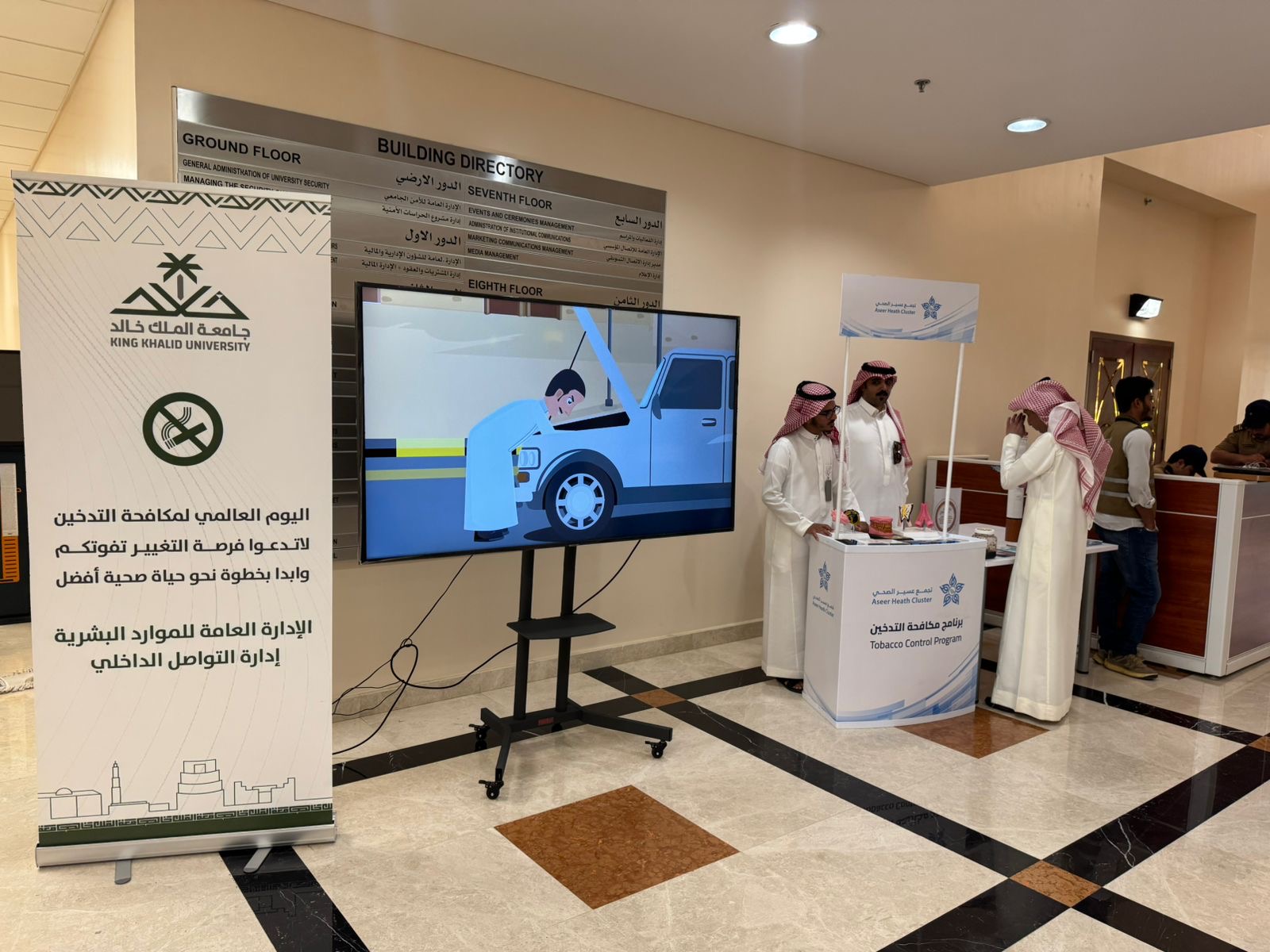 نفّذت إدارة التواصل الداخلي بالإدارة العامة للموارد البشرية في جامعة الملك خالد، يوم الثلاثاء ١٤٤٦/١١/١٥هـ، فعالية توعوية بمناسبة اليوم العالمي لمكافحة التدخين، تحت شعار: “لا تدعوا فرصة التغيير تفوتكم، وابدأوا بخطوة نحو حياة صحية أفضل.”